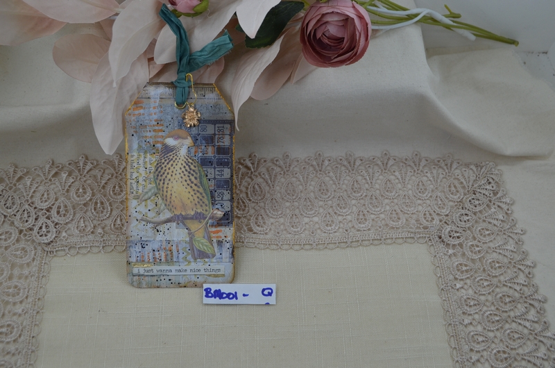 This series has birds, or paper dolls as the focal point, and each bookmark has a quote added. I put an eyelet at the top of each bookmark and the fibre used is seam binding or sari silk.? Each bookmark has a charm attached to the fibre with a bulb pin.? If you are looking for tags as a gift or reading, ephemera for your project these Bookmark can be used as tags.