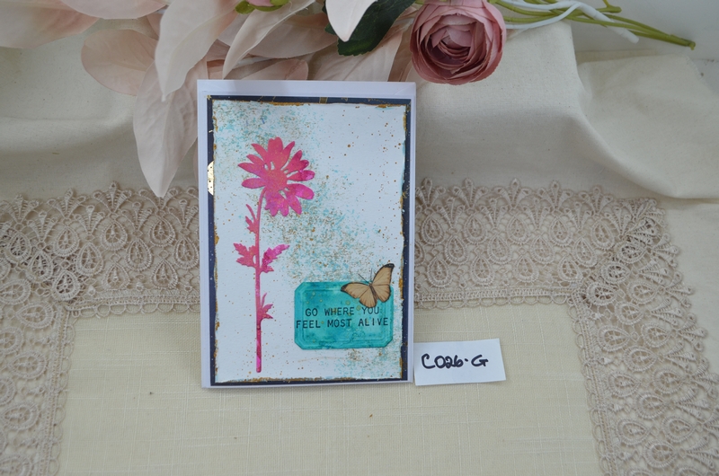 The card has painted die cut flowers to co-ordinate with the mixed media background. I have added sentiments to the front but the middle is blank making the card ideal for any occasion.