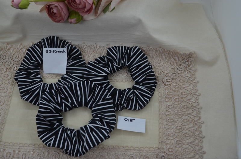 These scrunchies are made from cotton fabric and hold their shape and is a pretty way to dress up your ponytails.? The scrunchies are machine washable and easy to care for and make a lovely gift.