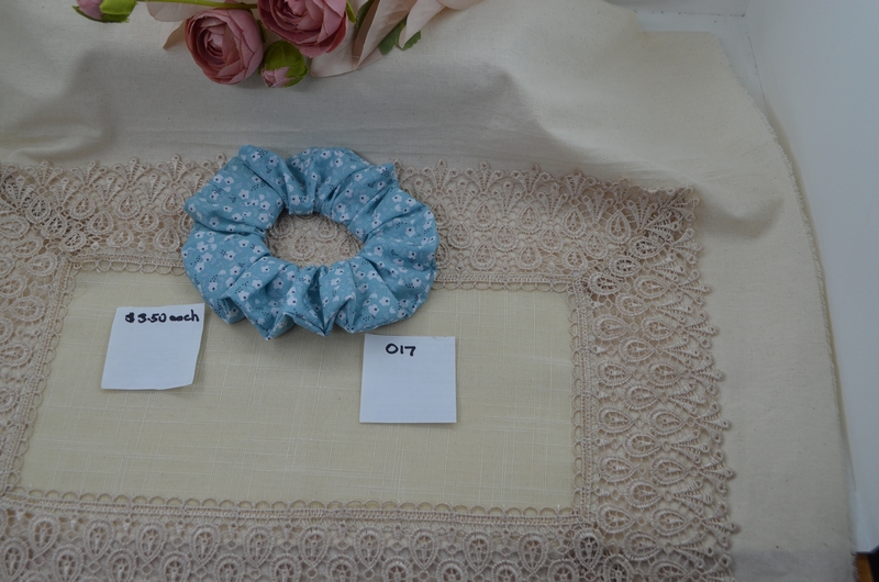 These scrunchies are made from cotton fabric and hold their shape and is a pretty way to dress up your ponytails.? The scrunchies are machine washable and easy to care for and make a lovely gift.