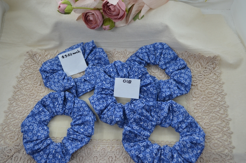 These scrunchies are made from cotton fabric and hold their shape and is a pretty way to dress up your ponytails.? The scrunchies are machine washable and easy to care for and make a lovely gift.