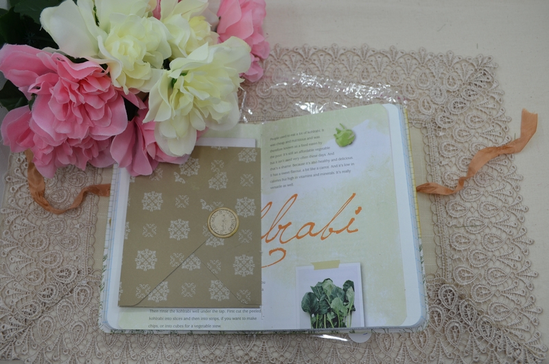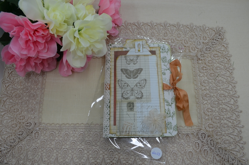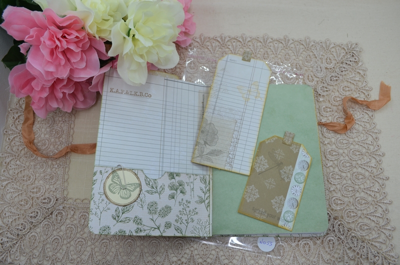 My notebooks all vary a little but are made using the same formula. The notebooks are 7×5 card stock and are covered with scrapbook paper, the front and back inside covers have pockets with tags, a large card or mini notepads. The centre has an envelope for those important bits of information or receipts.