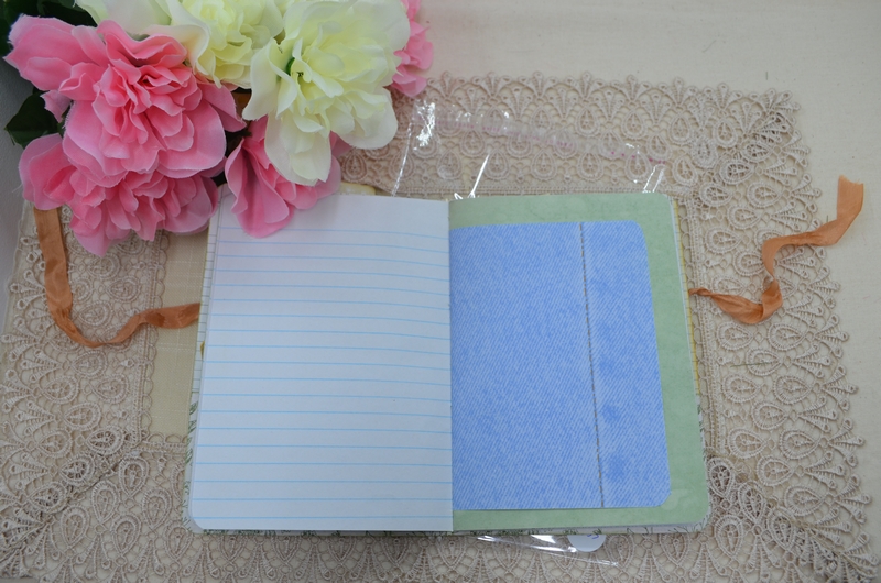 The pages are a variety of papers depending what I have on hand. You might have scrapbook paper, hand dyed paper, a color page and a sheet of tracing paper, and white lined paper are in all of them, and are sewn into the cover.