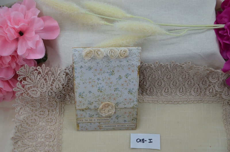 These tags are soft and pretty and are decorated ready to go into your journal. The tags have material tops with 5-piece dangles, including a gold charm attached with a gold bulb pin.